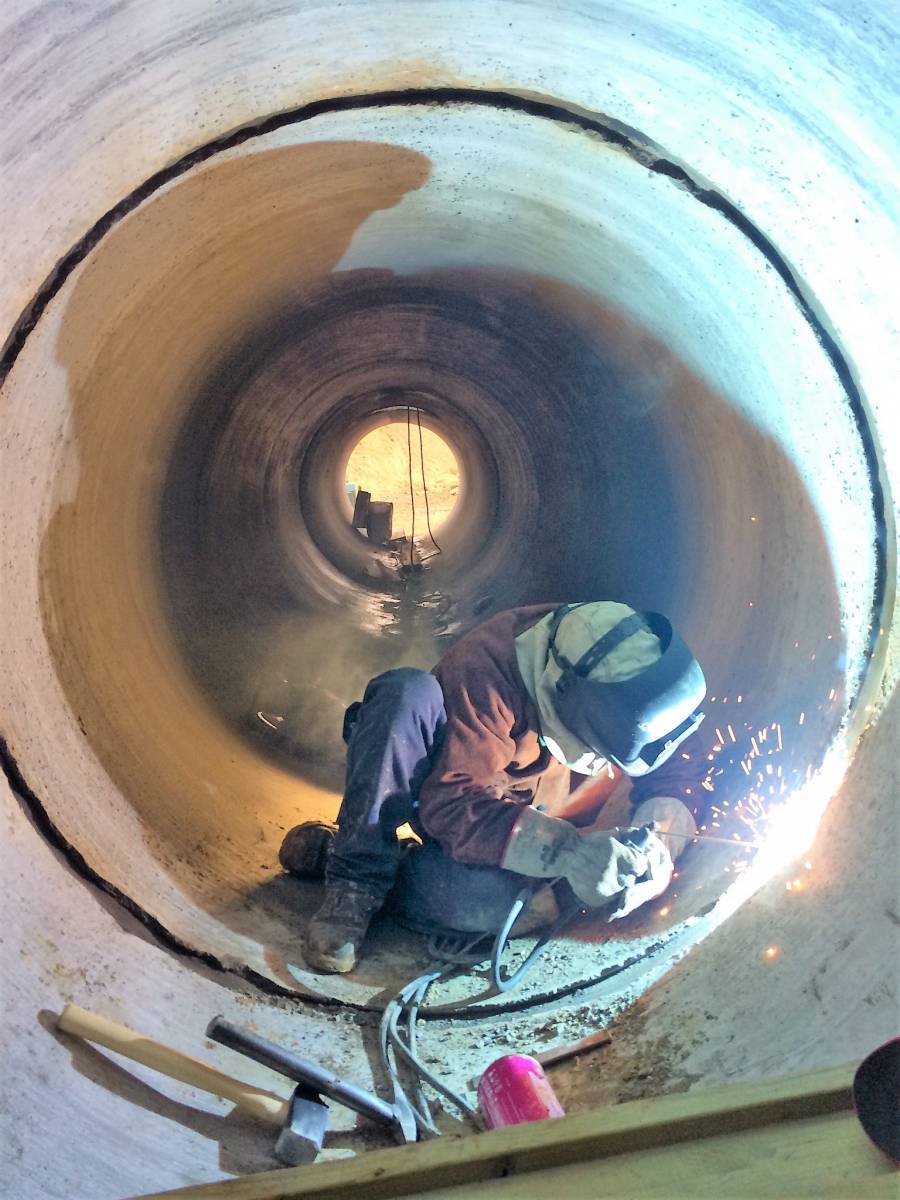 soudure tuyaux âme tôle Ø1500mm par l'intérieur. soudure tuyaux âme tôle Ø1500mm par l'intérieur.