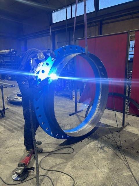 Situé à Pusignan, près de Lyon, notre atelier est spécialisé dans la réalisation de soudures sur pièces en acier, fonte et inox. Destinées à un chantier d’adduction d’eau potable en région Rhône-Alpes soudure de brides acier DN1500. Grâce à notre expertise et à des équipements performants, nous garantissons des soudures de haute qualité, conformes aux exigences les plus strictes. Que ce soit pour des projets industriels ou des infrastructures essentielles, nous mettons notre savoir-faire au service de vos besoins en soudure avec rigueur et professionnalisme.